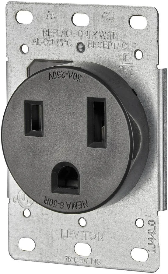 To provide the welder with power, Dad and I have been running cables through conduit, connecting outlets to one end and breakers in the breaker box to the other. Yesterday, we ran a short cable from a 50 amp breaker to a 220v outlet that we will be plugging the welder into. The plug looks like this one below:
